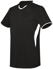 100% polyester wicking smooth knit * 92% polyester/8% spandex wicking pinhole mesh back and side panels * Wicks moisture * Three piece overlapping collar construction lays flat while allowing movement for extra comfort * Contrast color inserts * Set-in sleeves