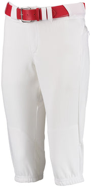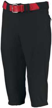 * 12 ounce per linear yard, 100% polyester stretch double knit * Ladies' fit * "R" RUSSELL back pocket * Tunnel belt loops * Two-snap closure * Zipper fly * Low rise, stretch elastic waistband for better movement and silicone gripper to keep your jersey in * Two set-in back pockets with zipper closure * Mesh back yoke and crotch * Knee length * Elastic cuffs