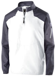 The Raider Pullover by Holloway was designed to protect against the weather, without the bulk. Made from ultra-lightweight Aero-Tec™ fabric with zero noise. This bold quarter zip pulover features a sleeve pocket with media port and a convenient front pouch pocket with inside stitched divider.