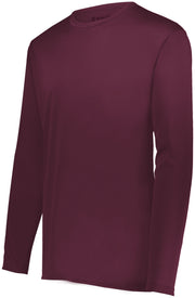 Gain momentum in the Youth Momentum Long Sleeve Tee from Holloway. Train or play hard in this crew neck tee made from moisture-wicking, odor-resistant fabric. Featuring a tagless label and protection against the sun with 45+ UPF, this tee will remain vibrant with color secure technology® that helps prevent dye migration.
