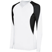 Tricot léger 90 % polyester/10 % élasthanne * Inserts en maille 92 % polyester/8 % élasthanne évacuant l'humidité * Évacue l'humidité * Coupe femme * Col en V * Inserts de couleur contrastée * Manches raglan * Conçu pour se conformer aux spécifications NFHS pour un contraste maillot, lorsqu'il est associé à un maillot solide et conforme pour le contraste Libero