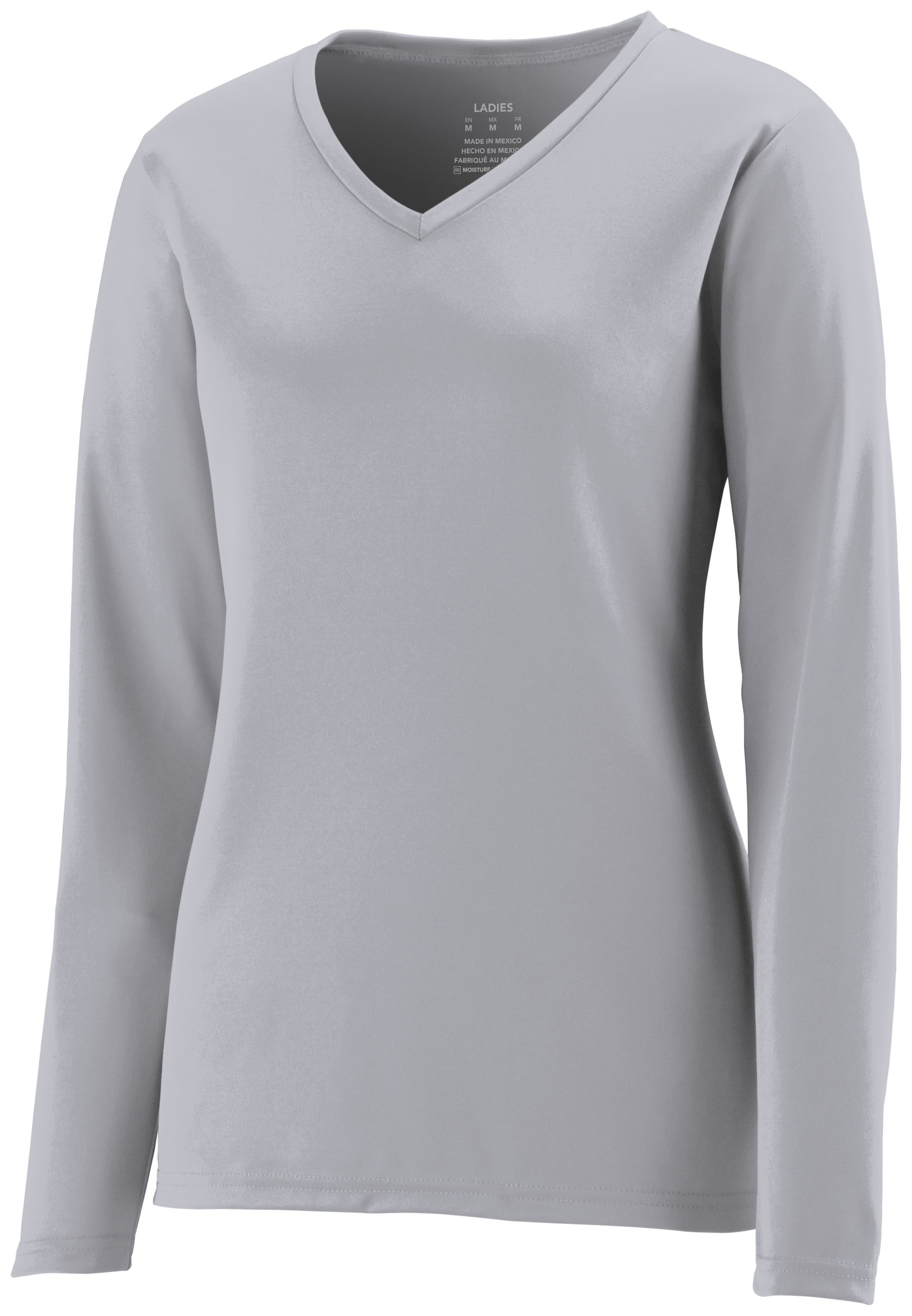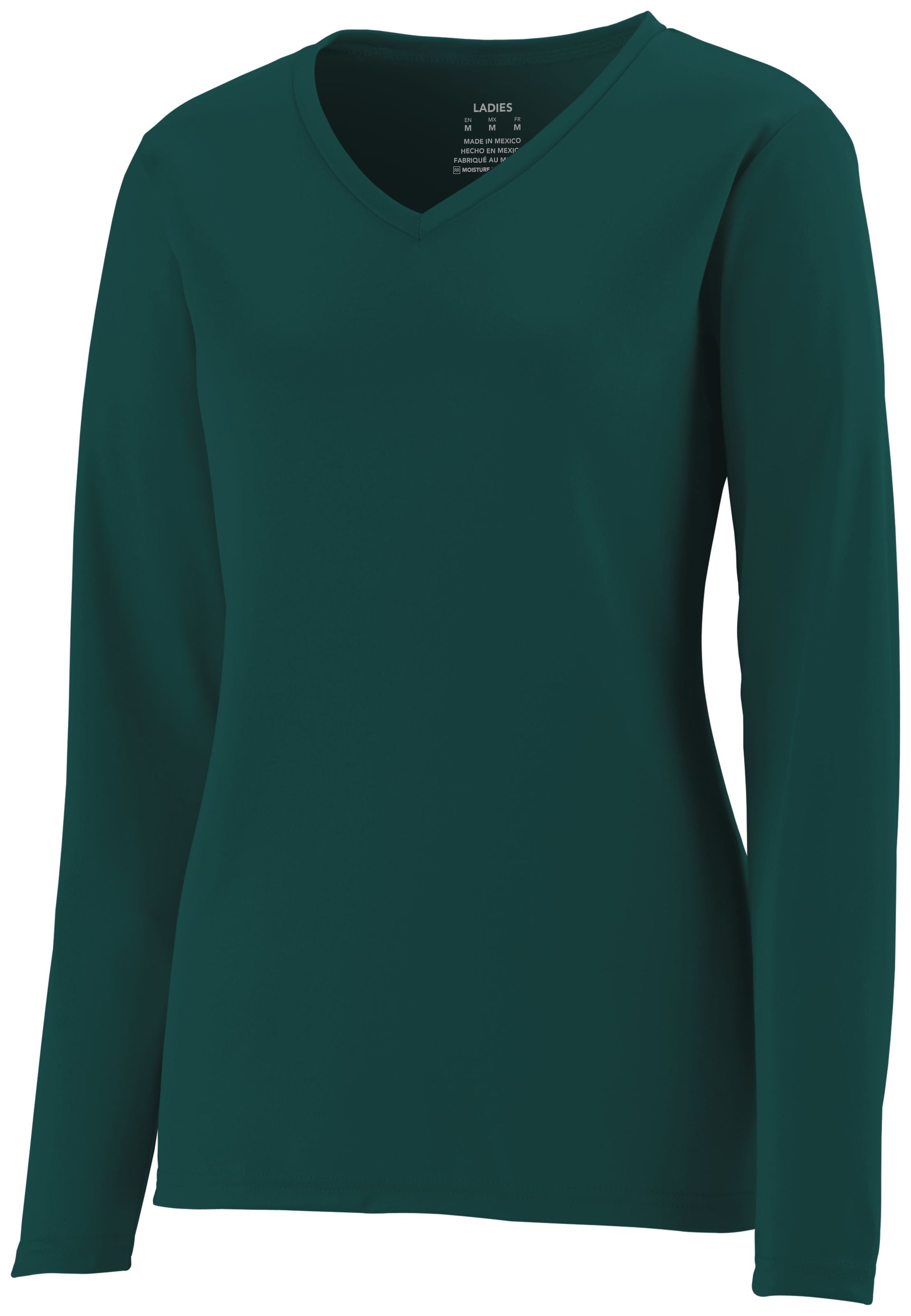 * Tricot 100 % polyester absorbant la transpiration avec technologie Color Secure® qui aide à prévenir la migration de la teinture * Évacue l'humidité * Coupe femme * Étiquette sans étiquette sans marque * Col en V * Manches montées