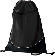 Nylon 210 deniers avec revêtement PU * Haut ourlé avec cordon de serrage * Poche avant zippée * Bas noir avec passepoil blanc * Onglet Web au coin inférieur pour renfort * 14" x 18"